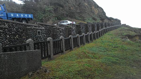 🔽從後門續往前走,來到汽車處,這是阿拉寶灣社區,這社區的住戶都是來自東部的阿拉寶灣地區的原住民,當年阿拉寶灣發生土石流,原住民集體被遷移到和平島無人居住的山谷安頓,為了紀念他們的原鄉,於是把這裡命名為阿拉寶灣。往左轉,上坡就是社寮砲臺。