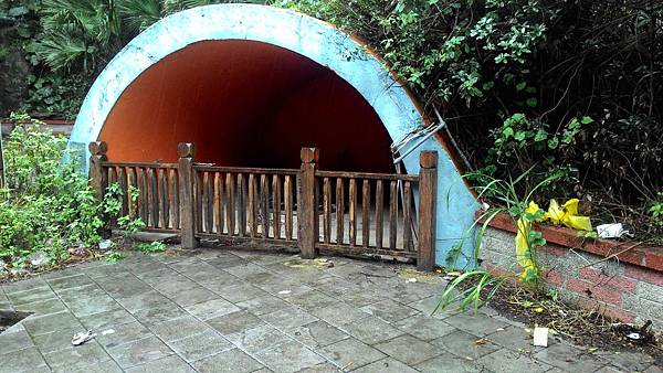 🔽牆上原本有題字阿拉寶灣,但是字跡斑駁,只剩「阿拉」。