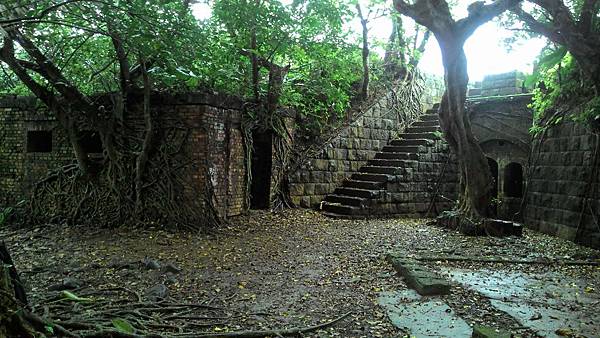 🔽紅磚防禦工事是存放砲車的地方,往前推入砲座就可以用火力監控基隆港。