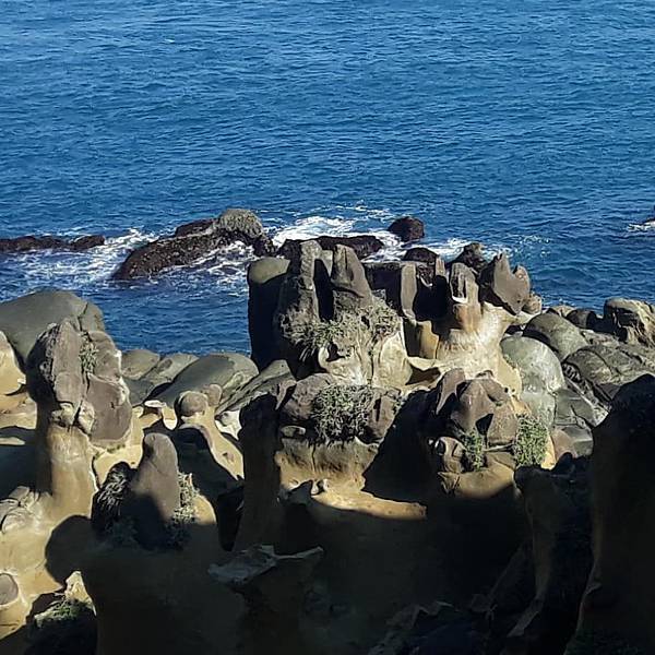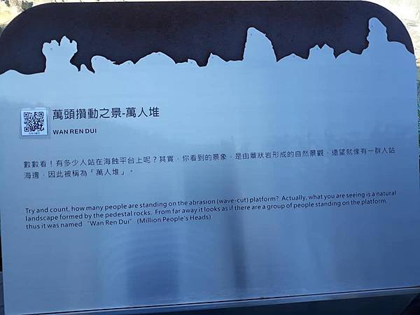 🔽在海蝕平臺上有整齊排列的礁石,從環山步道涼亭 (皇帝殿) 向下看,彷彿是臣子俯首來覲見,所以此景命名為萬人堆。