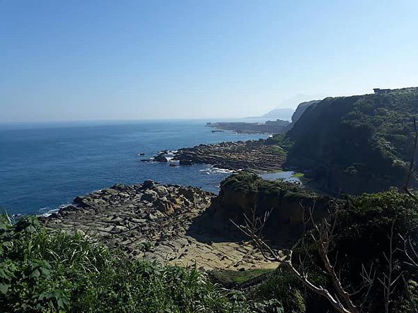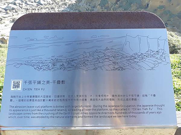 🔽左邊是千疊敷,海蝕平臺非常平整,像是鋪在地面的榻榻米。右邊巨大岩塊,有幾個山洞,相傳是荷蘭人被鄭成功打敗後,退守到海邊的山洞,洞裡有荷蘭文字,所以稱為蕃字洞。可惜東北季風起,海潮洶湧,前往蕃字洞的道路封閉。